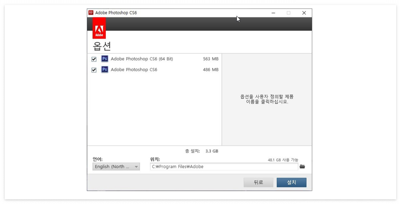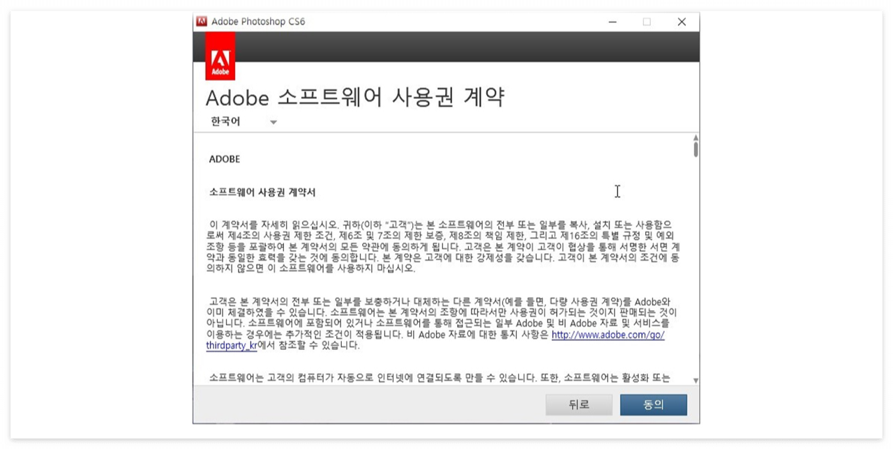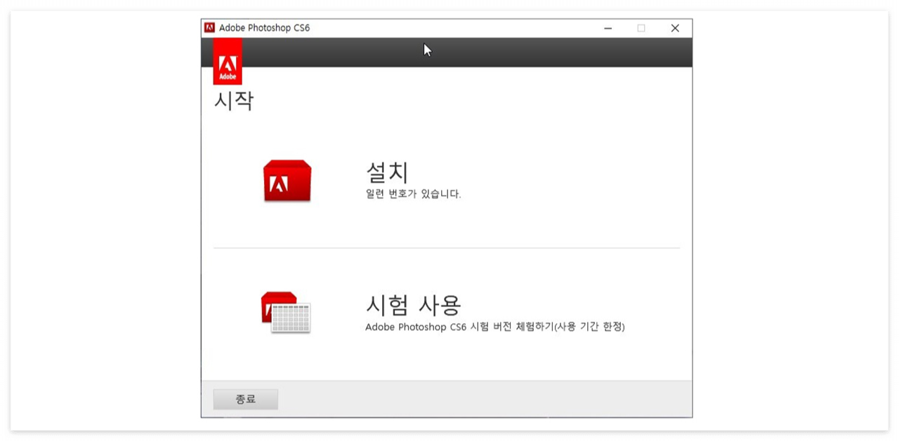 포토샵 CS6 다운이 끝나고 나면 위와 같은 창이 뜨게 되는데